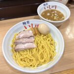 注文後10分ほどして着丼。つけ麺は塩つけ麺の一種類のみでした。(塩つけ麺なのに醤油つけ麺ぽいですね)